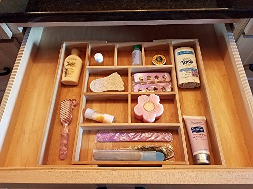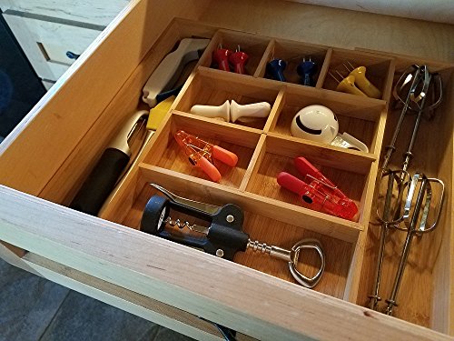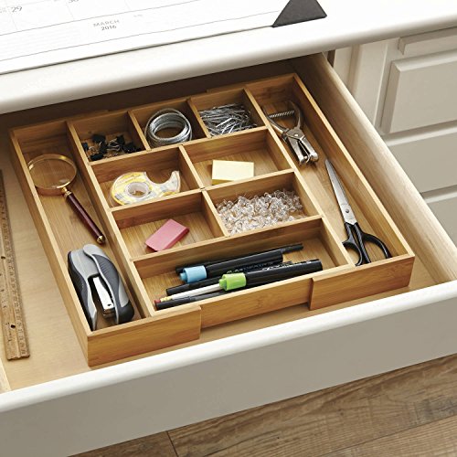 Kitchen Junk Drawer Organizer Tray Bamboo Expandable Cutlery Drawer Organizer with Adjustable Dividers