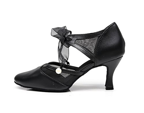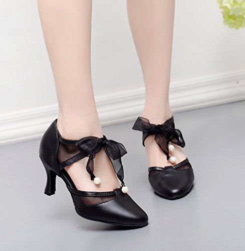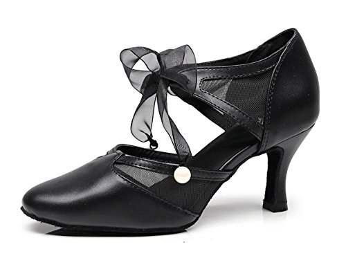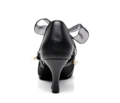 (Minishion)/Women's/Athletic Outdoor/DIRECT FROM USA/Minishion TJ7131 Women's Girls Ribbon Closed Toe Latin Ballroom Dancing Pumps