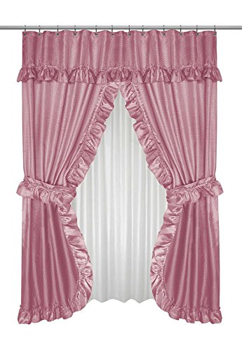 Diamond Dot Ruffled Double Swag Fabric Shower Curtain With Valance and Liner - Rose