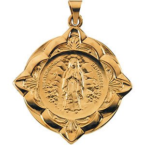 -. Title : 14kt Yellow 31x31mm Our Lady of Lourdes Medal