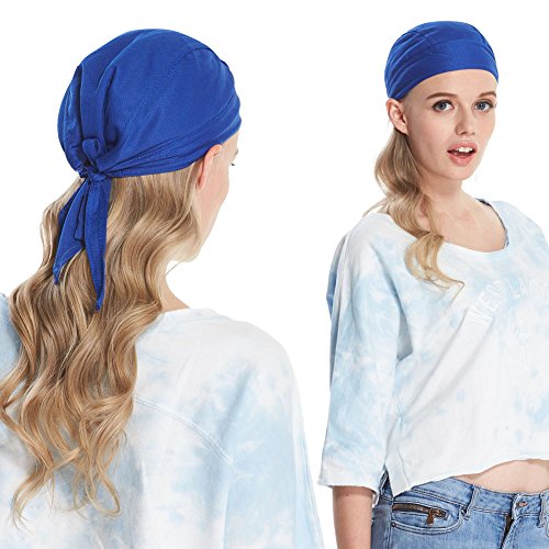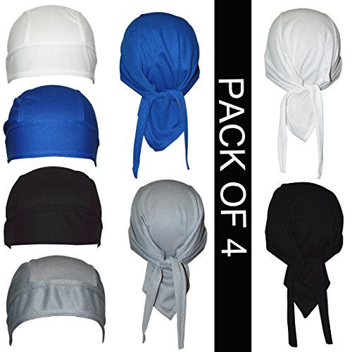 -. Feature : Moisture management technology wicks moisture away,this cap breathes well, and drys quickly, perfectly absorbs all sweat during sports activities / Lightweight helmet liner,Easily fits under helmet,baseball cap,The breathable fabric of this head cover can lose heat by evaporation,shield your head from sun coming through slots in your bicycle helmet / This cap can be wear on the sensitive scalp of someone who had lost hair due to medical treatment.because it won't itch or scratch,Great head wrap for chemo patients / This beanie stretches easily ,With adjustable straps,you can tie this sweat beanie only as tight as you are comfortable with.It is suitable for men and women / The pack includes 4 caps, Machine washable,wont shrink,The color stays put during washing and is quickly dry