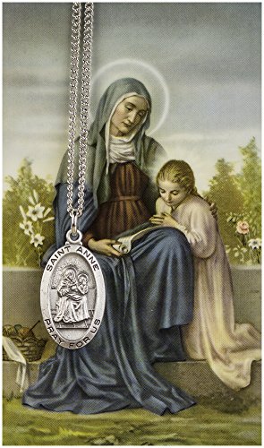 -. Title : Saint Anne 7/8-inch Pewter Medal Pendant Necklace with Holy Prayer Card