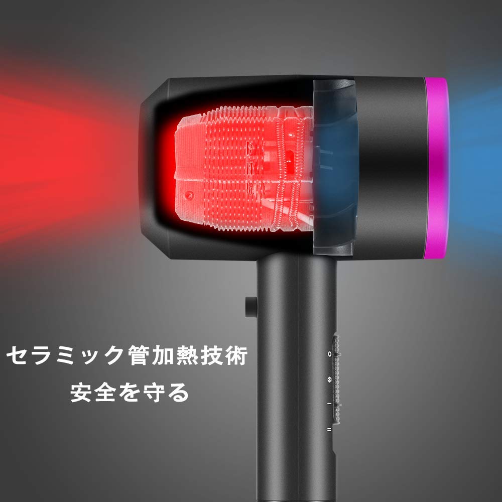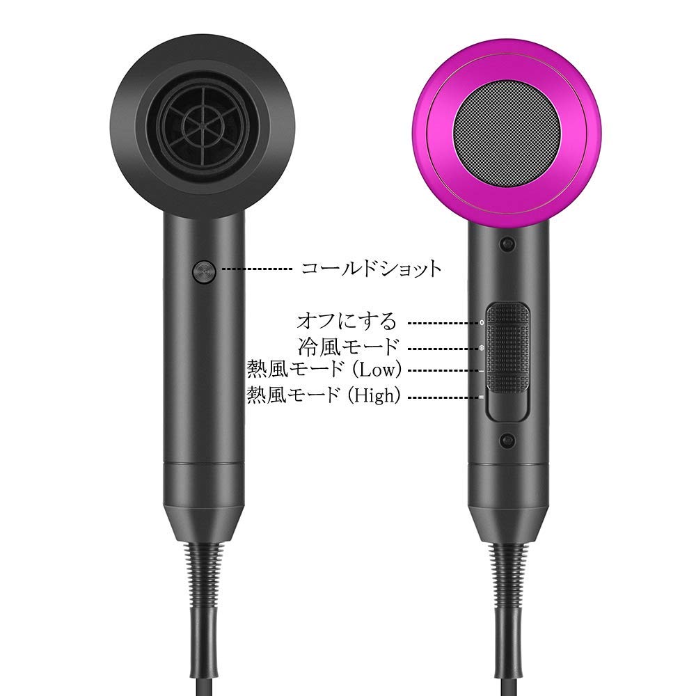 乾燥快速:風量ノズル3種類が有ります、1100w大功率、サーモスタット設計でヘアを損傷せず短時間内ヘアを乾燥できる。