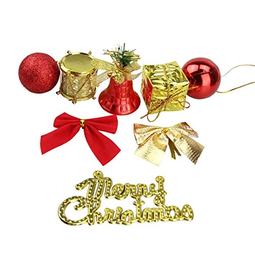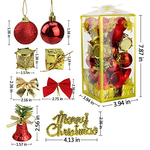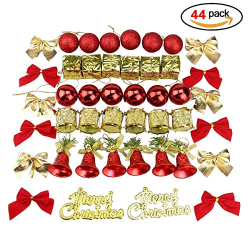 Naisidier Christmas Tree Ornaments Hanging Decoration Pendant Kit Including Christams Balls, Bowknots, Gifts Ornaments, Merry Christmas Letters, Drums and Christams Red Bells (44Pcs)