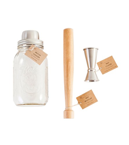 -. Title : Mason Shaker Barware Set with Mason Shaker, Hardwood Muddler, and Stainless Steel Jigger