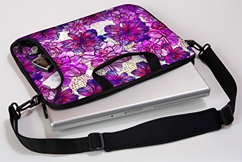 Studio : Designer Sleeves Publisher : Designer Sleeves Binding : Personal Computers Product Description The 15" Pink Purple Flowers Executive laptop case is a fun yet functional way to protect your laptop computer. This laptop bag is composed of thick, high grade, neoprene rubber that cushions your laptop for maximum moisture, shock and scratch protection. The Pink Purple Flowers Executive laptop sleeve has a zippered external pocket which allows you to carry power codes, USB and other accessories without being concerned about scratching the front of the laptop or tablet. And, since the pocket is zippered, you won't have to worry about losing these valuable items. This Executive laptop bag also offers a detachable padded shoulder strap handles to make carrying your laptop easy. In addition, the internal organization pockets makes keeping track of your cell phone, pens, business cards and important papers a snap! Designer Sleeves utilizes a patented process called Subliprene for manufacturing. This patented process allows us to print this stylish design in rich, full color graphics with very high levels of detail that will never crack or peel off as silk-screened ink does. And, the ink is created with UV inhibitors virtually eliminating product fading. Internal pocket dimensions: 10.3 x 14.625 x 1.25 0
