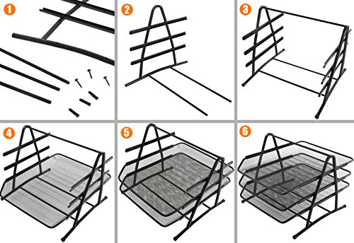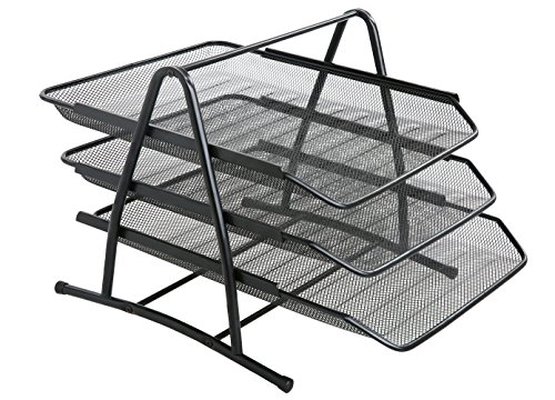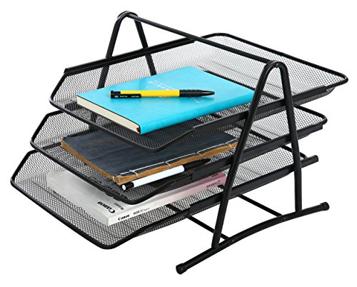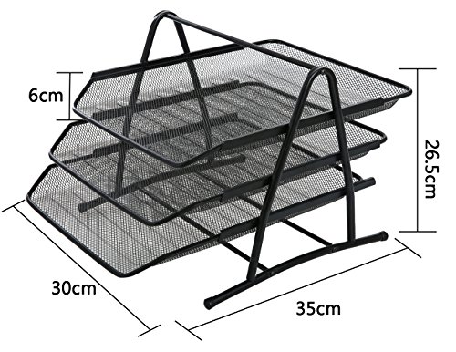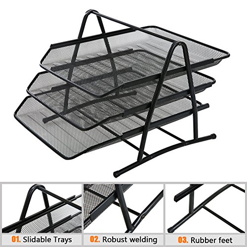 Skydue Home Office 3 Tier Mesh Desktop Organizer Desk Trays Document Letter Paper Book Holders, Black