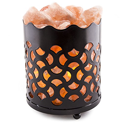 BEAUTIFUL AND BENEFICIAL: Light up your home in a natural and beneficial way with the CRYSTAL DECOR Natural Himalayan Salt Lamp in Cylinder Metal Basket. Includes natural Himalayan salt crystal chunks in a tall metal basket that is available in a variety of design patterns.