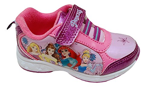 She'll enjoy all the day's adventures when she's wearing this toddler girls' Disney Princesses shoe. Featuring puffy print of her favorite princesses, Rapunzel, Belle, Ariel and Cinderella, this sneaker includes elastic straps over the instep for a snug fit and a slip-resistant outsole for sure footing on slick surfaces. Wipe to clean.Feature