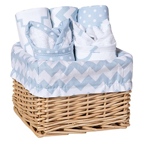 -. Feature : Dimensions: 6W x 6D x 4H in. / Gift basket for baby boy / 2 bibs, 3 burp cloths, and basket with washable liner / Bibs and burp cloths are 100% cotton / Bibs: 8L x 12W in.