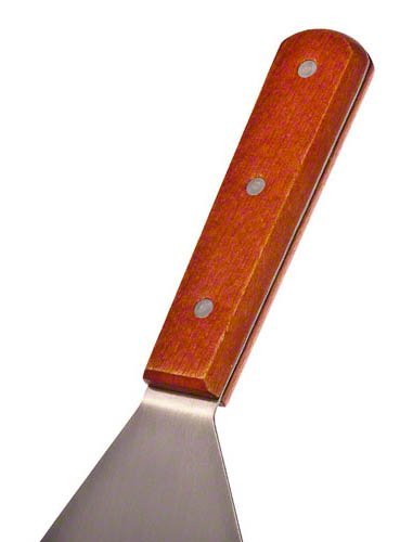 Product Description It doesn't matter whether you're cooking pancakes or burgers - a turner is an essential item in the kitchen. Regardless of the surface you're cooking on a flipper does the dirty work, flipping the food so it gets cooked evenly on each side. If flipping burgers is commonplace at your restaurant, recommends its 4" x 8" wood handle turner with cutting edge (WTSD-48). This turner features a stainless steel blade with a cuttnig edge and a wood handle for a smooth, comfortable grip. 0