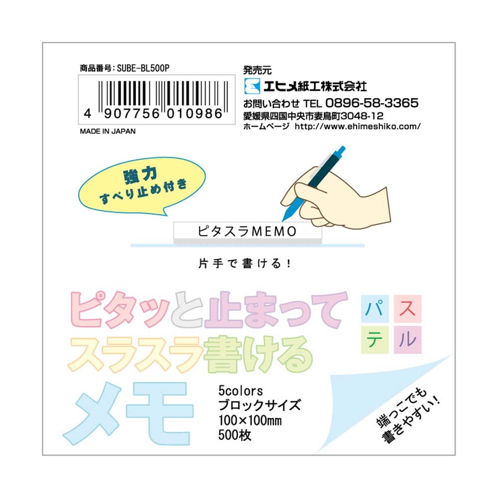 Ehime Paper converting quite right and write fluently stopped block memo SUBE-BL500P pastel plain 100mm angle
