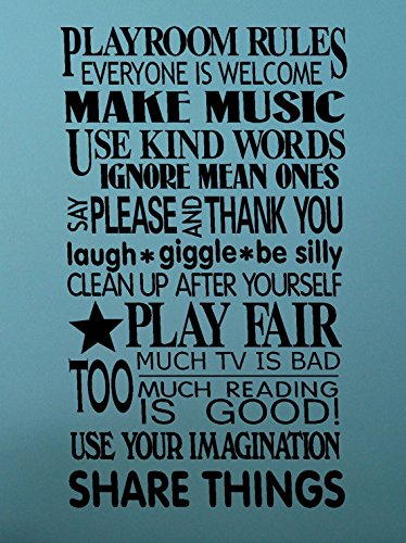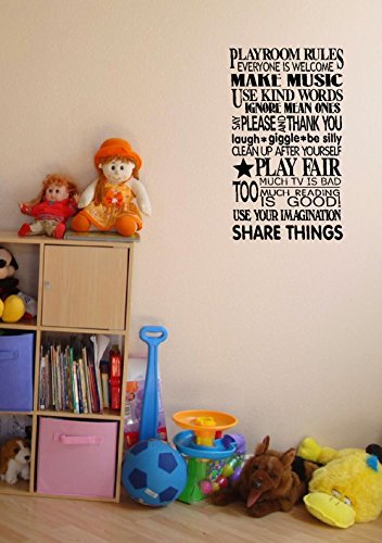 Wall Decor Plus More WDPM1125 Playroom Rules Wall Vinyl Sticker Decal, 23 H x 14 W, Black