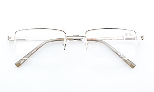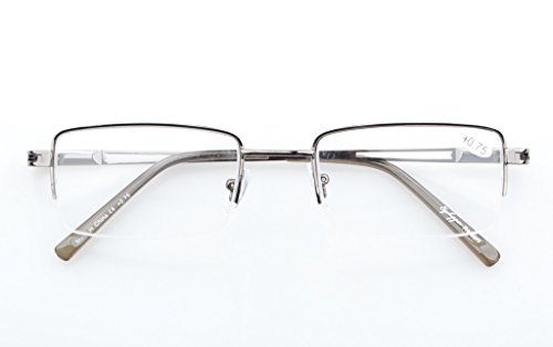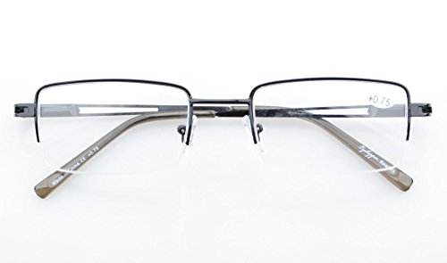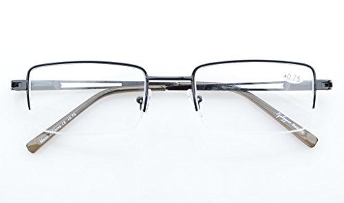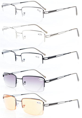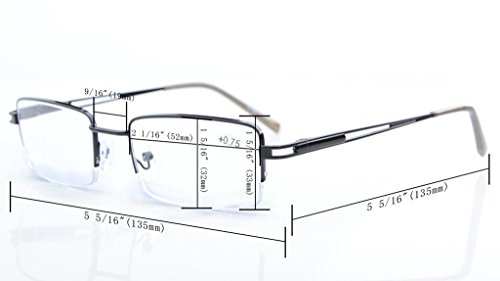 -. Feature : PRODUCTS DIMENSION-Frame material: Metal,Lens width: 2 1/16" (52mm),Frame width: 5 5/16"(135mm),Lens height: 1 5/16" (32mm),Frame height: 1 5/16" (33mm),Bridge (DBL): 9/16"(19mm),Temple length: 5 5/16"(135mm),SP.R.Ing hinge: Yes,Lenses: Aspheric,Head size: Medium to wider.Rx-able frame / EYEKEPPER RECTANGULAR HALF-RIM READING GLASSES-the pupil distance(PD) is 59-63mm,the deviation for pupil distance(PD) less than 2mm,the deviation for strength less than 0.02,the deviation for lenses's horizontal line less than 1mm / EYEKEPPER SP.R.ING TEMPLE READING GLASSES-5 pack at 1 Low P.R.Ice,Sets come in 1 power of your choice. These are not mixed powers.Acrylic Lens and Optically Correct.Grey tinted lenses great for outdoor reading,Amber lenses for computer,UV Protection, Anti Glare,Anti Blue Rays / QUALITY METAL FRAME -FDA Registered Reading Glasses and Eyewear,Accord with ANSI Z80.3-2010,Accord with BS EN ISO 12312-1:2013 and EN14139:2010,Accord with AS/NZS 1067:2009,Top quality metal frame,lenses and have sP.R.Ing-loaded hinges / LIFETIME BREAKAGE WARRANTY&30 DAY MONEY BACK GUARANTEE: In case any broken problem happens, contact the seller of Eyekepper without hesitation to solve the problem until satisfaction. Eyekepper provides lifetime after sale service for all Eyekepper reading glasses. Customers can return and get refunded for any reason. You have no risk to try