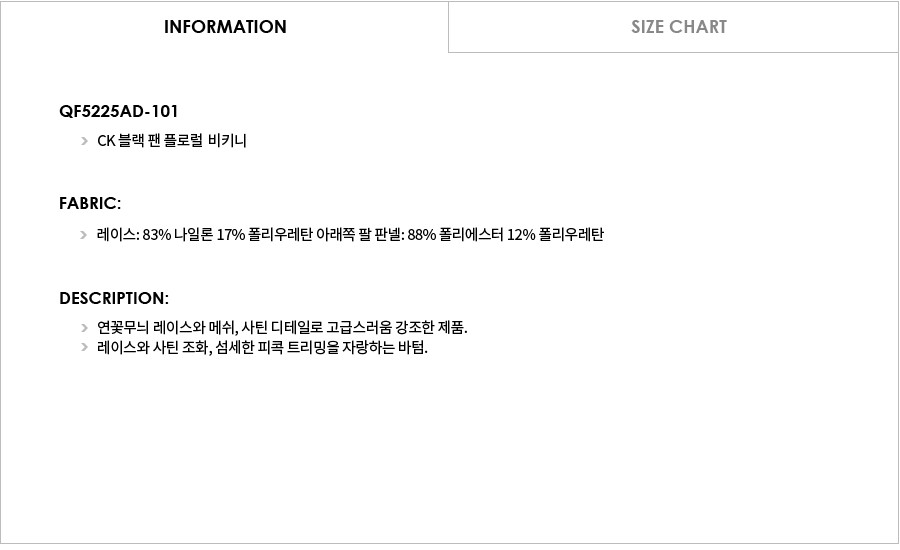 | 상품설명 | CK 블랙 팬 플로럴 AF 반도 브라 |