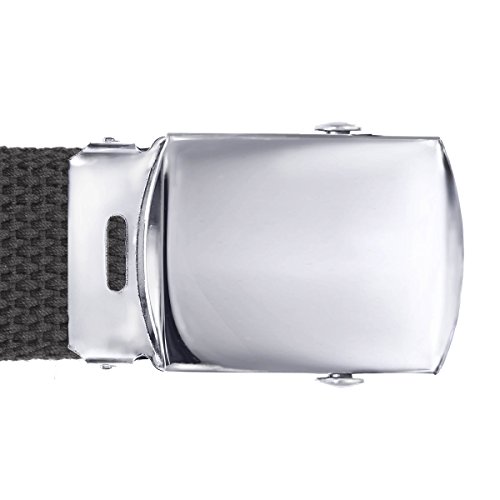 -. Feature : 100% COTTON CANVAS. Natural in both look and feel, the cotton canvas material of this military style belt is also flexible and durable so you can wear it every day. / OH SO VERSATILE. This RexzoTM classic military style belt 1.25" wide and because it is 100% cotton it is lightweight and breathable. It is incredibly versatile in that it perfectly with jeans, shorts, khakis or just about any casual pant. / GREAT STYLE. Available in a huge range of solid colors plus some camouflage patterns thrown into the mix, this belt offers up many ways to add some personality to an outfit. And at such a great P.R.Ice, why not buy a few? / NO HASSLE. Not only is the silver toned belt buckle super easy to open and close, but it also makes it easy to adjust the anytime you need to / THE PERFECT SIZE. This canvas belt measures 50" long and can be made shorter by removing the buckle and cutting the belt to whatever length is needed. To adjust, open up the clamp on the back of the belt buckle, slide the webbing out and cut to the desired length. Then simply insert the belt back into the buckle and close the clamp.