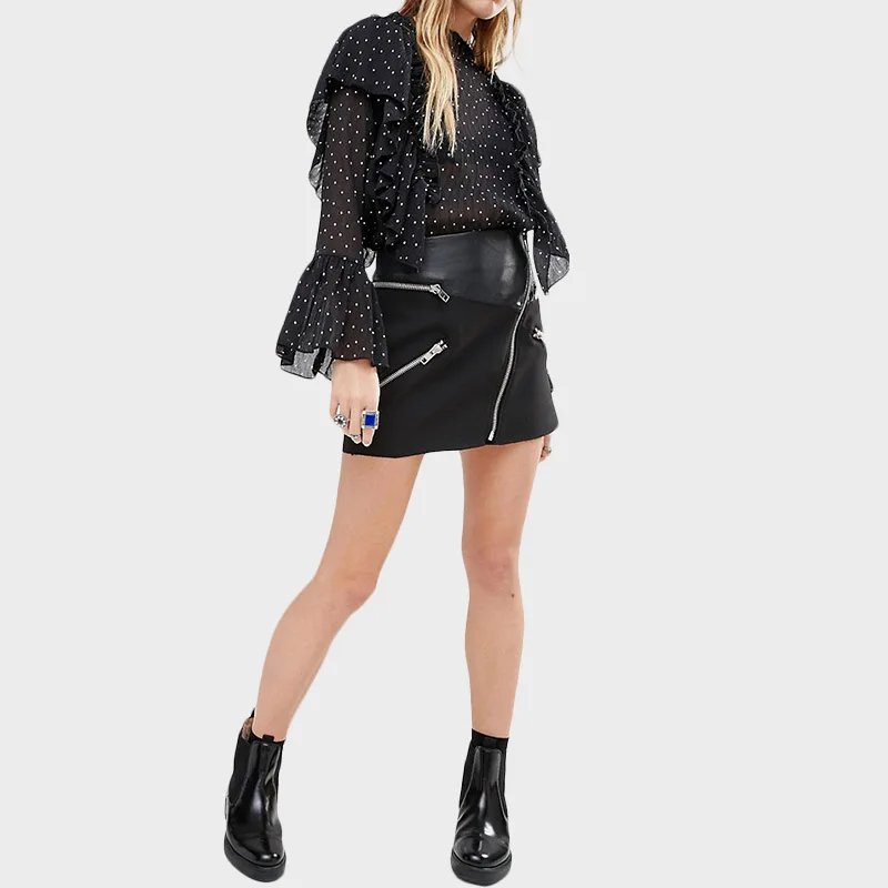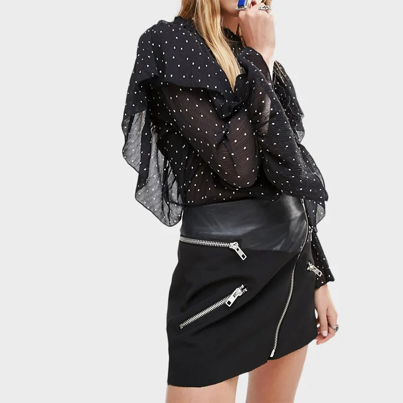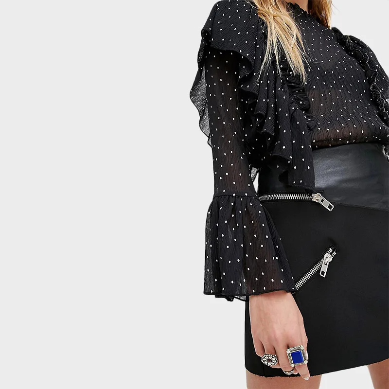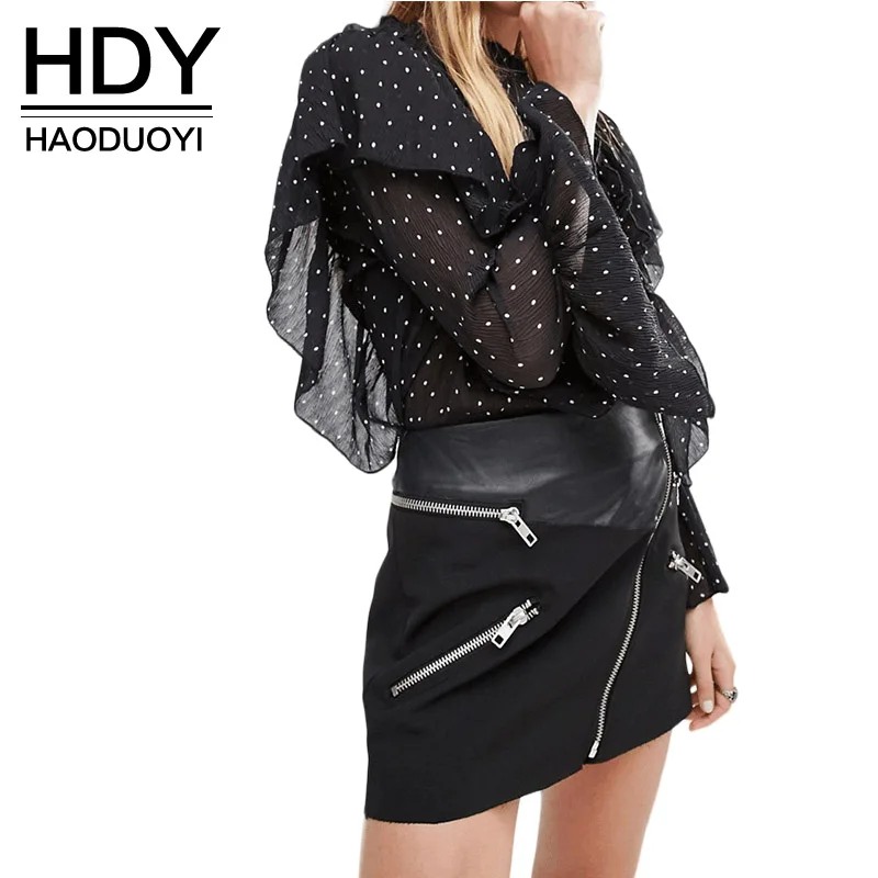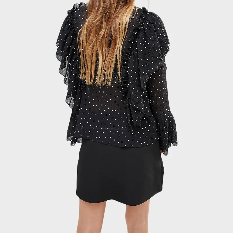 | HDY Haoduoyi 2016 Summer Women Fashion Solid Black Casual Chiffon Top Dots Pattern Frill Contrast Flare Sleeve Shirt | |||||||||||||||||||||||||||||||||||||||