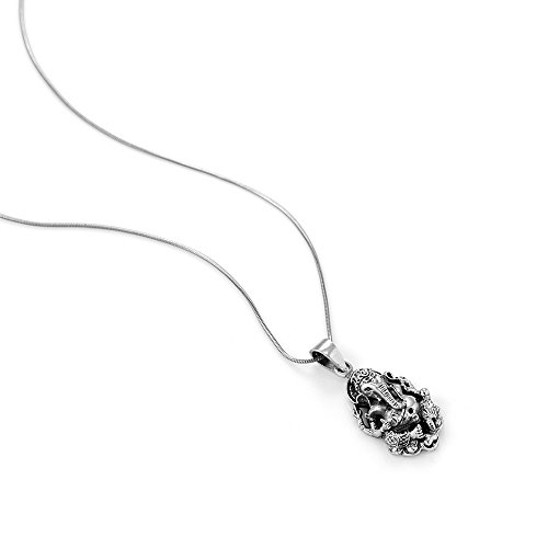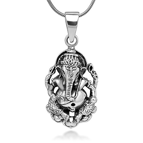 -. Title : Sterling Silver Hindu Lord Ganesh Ganesha Elephant Hindu God of Fortune 2D Pendant Necklace 18''