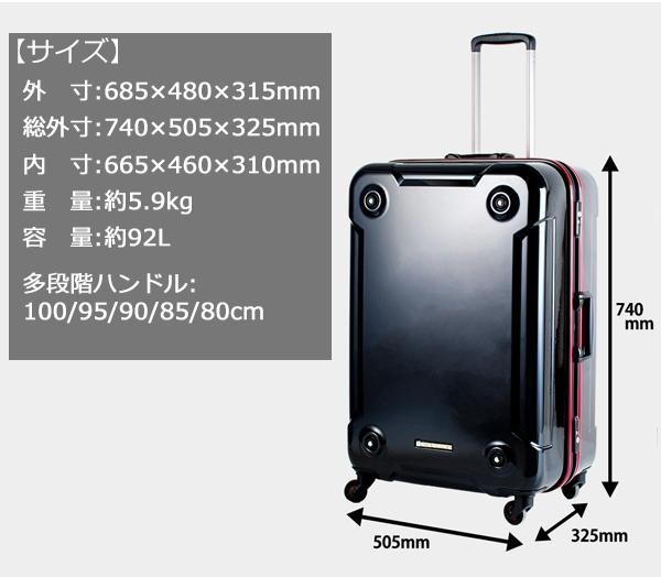 | サイズ | 外寸:685×480×315mm、総外寸:740×505×325mm、内寸:665×460×310mm、透明ポーチ:270mm×140mm 個装サイズ:79×56×38cm |