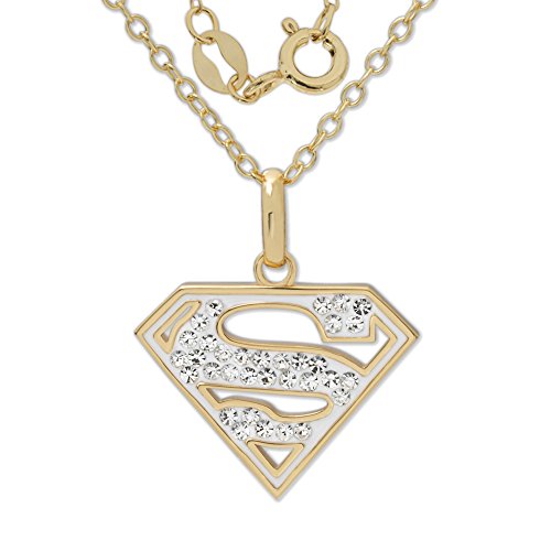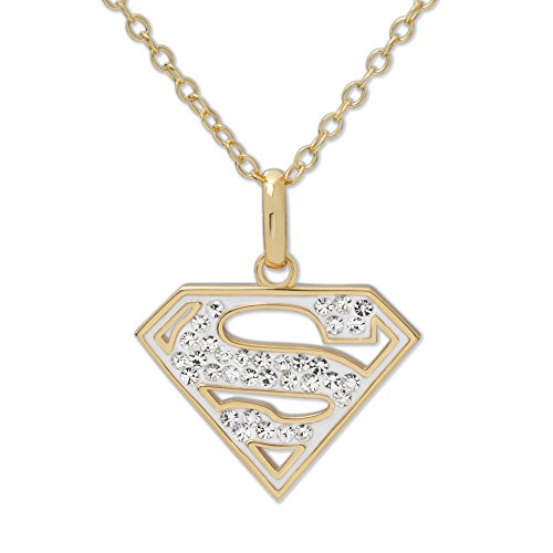. Official Licensed DC Comics Superman Yellow Plated Brass Clear Swarovski Crystal Girl's pendant necklace is finished in gleaming brass, complete with an 18 inch chain with a spring ring clasp. This fashion necklace comes gift boxed making for a perfect gift for any woman including your daughter, sister, granddaughter, niece or any loved one.
