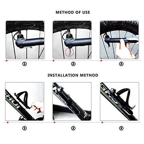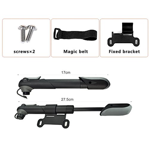 Compact and Lightweight. You can take the mini bike pump to anywhere you want easily by putting it in your bag or binding it to the bike frame with the Velcro strap which is included in the package.