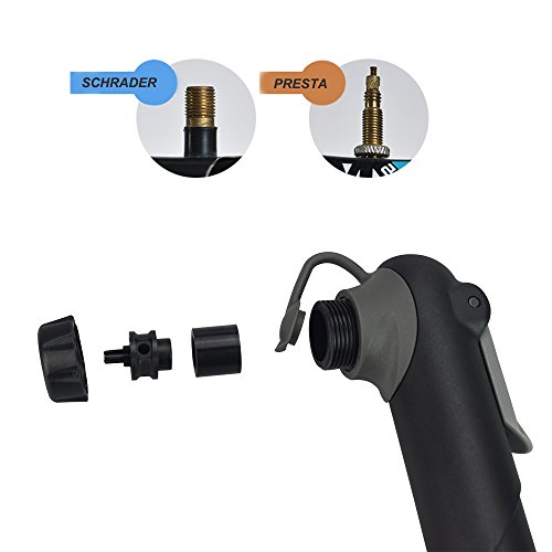 Easy Operation. You can switch between Presta Valves and Schrader Valves easily. No other extra tools are needed. Ergonomic T shaped handle ensures quick and effort-saving pumping process.