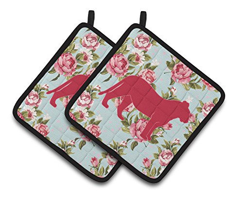 Caroline's Treasures Tiger Shabby Chic Blue Roses Pair of Pot Holders BB1010-RS-BU-PTHD, 7.5HX7.5W, Multicolor
