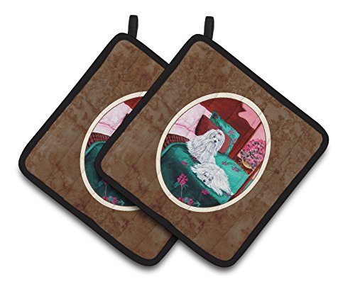 Caroline's Treasures Maltese & Puppy Waiting on You Pair of Pot Holders 7110PTHD, 7.5HX7.5W, Multicolor