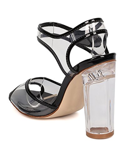 Women Lucite Block Heel - Ankle Strap Chunky Heel - Peep Toe Perspex Heel - HK54 By Cape Robbin