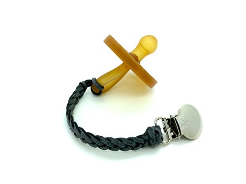 -. Title : Hart Pacifier Clip - Faux Suede Braided Cutie Clip