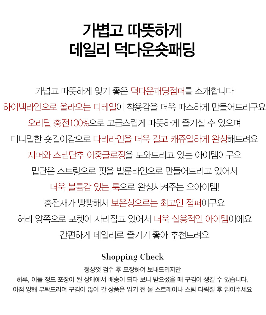 나일론(nylon/)100%+충전재(Filler/)오리털(duckdown/)100%
