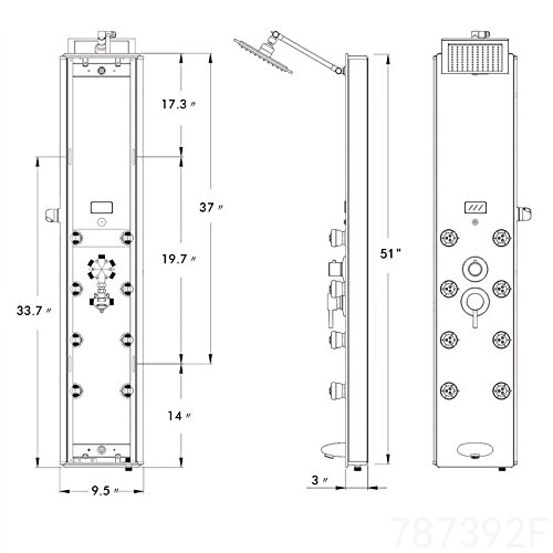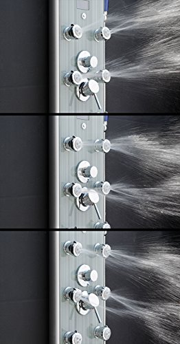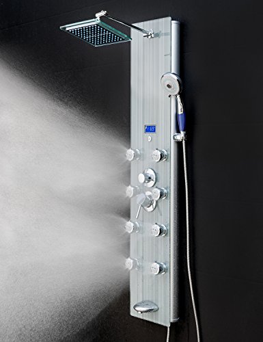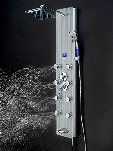 AKDY 51" Tempered Glass Multi-Function Massage Jet Rainfall Style 4 Setting Handheld Shower Head 8 Multi-functional Nozzles LED Temperature Display Bath System Shower Panel Tower