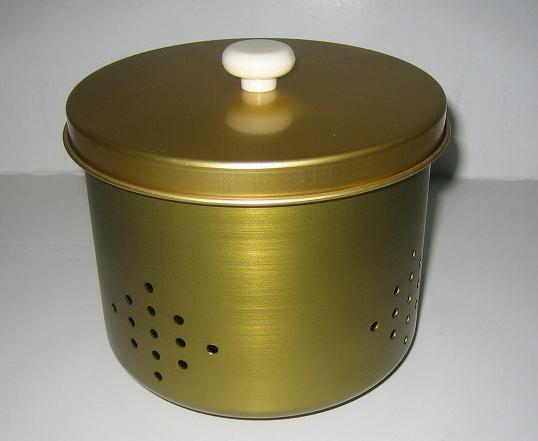 | 素材・材質 | 本体・フタ:アルミニウム(エージータフ加工)、フタつまみ:フェノール樹脂、コーナーの足うけ本体:ポリエチレン樹脂、くぎ:ポム樹脂 |