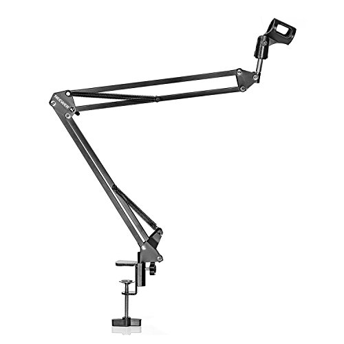 Neewer NB-35 Black Microphone Suspension Boom Scissor Arm Stand with Mic Clip Holder and Table Mounting Clamp & NW(B-3) Black Pop Filter Windscreen Mask Shield with Stand Clip Kit