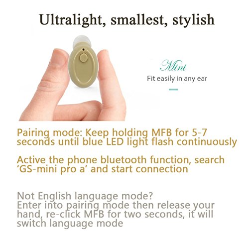 Longer music/talk time: the GS-Mini Pro wireless earpiece with built-in rechargeable lithium-poly 50mAh battery, last for 6 hours of audio playtime under 60% volume, 6-8 hours talk time, 1.5-2 hours charging time(Only one earpiece)
