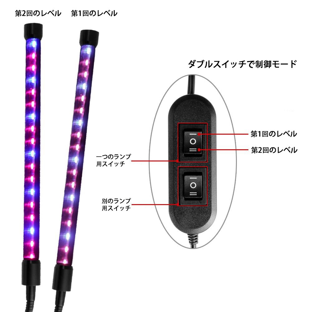 In order to promote the photosynthesis of plants, it is possible to concentrate the light effectively and irradiate the plants, and it is easy to turn on / off in the double switch mode, in accordance with each growing stage of the plants, and can convert intensity freely.