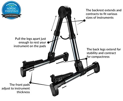 Guitar stand from Nordic Essentials™ - Premium folding stand recommended for most acoustic & electric guitars, violins, ukuleles, bass's, banjos and mandolins