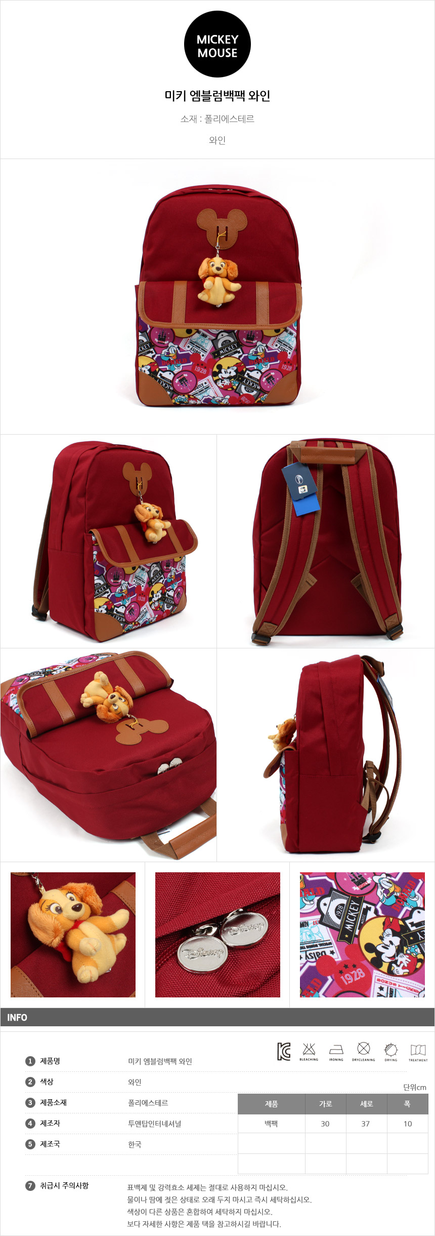 Disney Mickey Mouse Emblem Backpack / Genuine Bag / Made in Korea