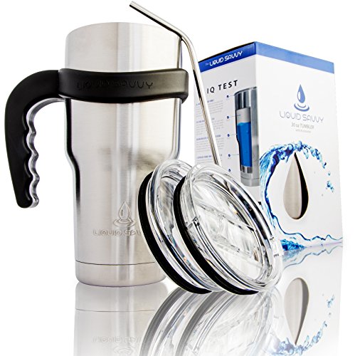 ALL-INCLUSIVE ACCESSORY BUNDLE - The Liquid Savvy Tumbler bundle passes the simplicity test. It includes everything you’ll need for your cup, including the 30 ounce tumbler itself (obviously), a regular lid, sliding closeable lid, stainless steel straw (for even colder drinking), and one of the best handles on the market. The handle is designed to fit perfectly with our tumbler, but will also fit Yeti, Ozark Trail, RTIC, Magnum Steel, and almost any other 30 ounce tumbler on the market.
