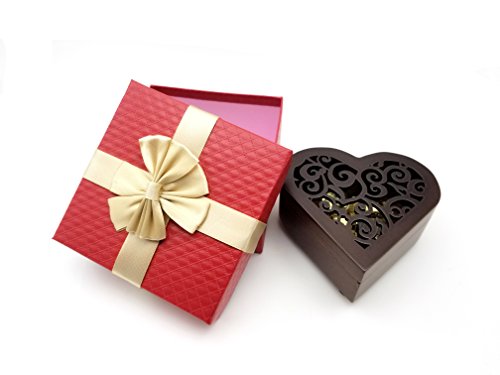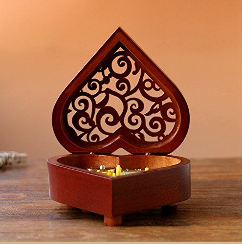 Dr.Luck Heart Shape Vintage Wood Carved Mechanism Musical Box Wind Up Music Box Gift For Christmas/Birthday/Valentine's day