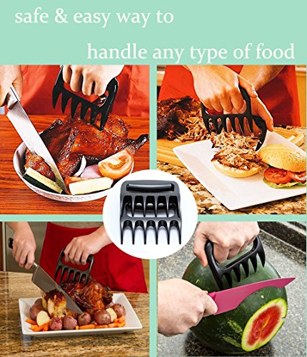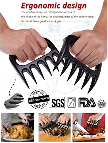●【PERFECT FOR THE BBQ】:bear claw shredding meat are the newest barbecue tool,great for pulling or shredding all meats,like chicken,beef, brisket,turkey,poultry,silice fruit,pork and so on,this versatile tool is perfect for lift,sherd and cut,practical cooking utensils,barbecue tools and food carving tools