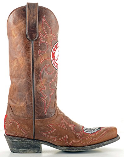 Studio : Gameday Boots Publisher : Gameday Boots Binding : Sports Product Description Whether tailgating at the big game or just bumming around, you can rest assured others will know where your allegiances lie when wearing a pair of Gameday University Of Alabama boots. Constructed from the highest quality distressed leather, these handcrafted boots are sure to provide quality and comfort for countless championship seasons to come. 0