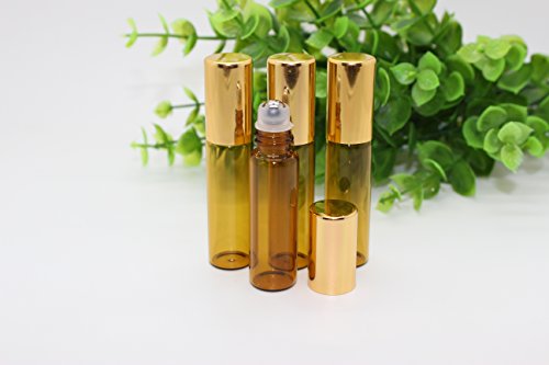 TOPWEL 5ml Refillable Amber Glass Roller Bottles with Metal Roller Balls and Gold Plastic Lids (12)