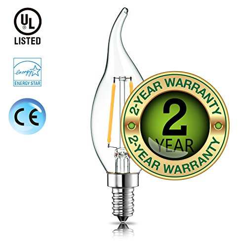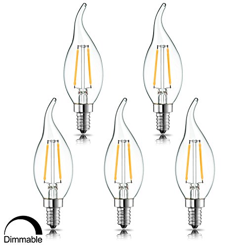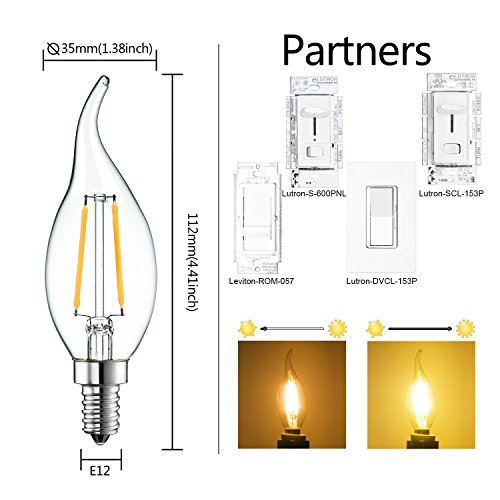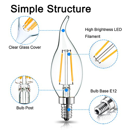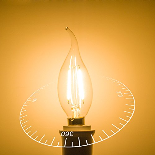 - ☞ Excellent Performance→Dimmable LED Filament Candle, E12 Candelabra Base, Flame Shape Bent Tip, Warm White 2700K, 200 Lumens, 360 Degrees Beam Angle, Light Pattern Same as Incandescent Bulbs