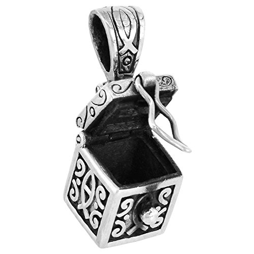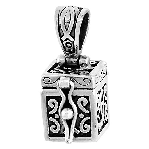 -. Binding : Jewelry -. Brand : Sabrina Silver -. Color : Silver -. Department : womens -. Feature : Classic Design Prayer Box sold with or without a chain / Excellent Design and Workmanship / Solid Sterling Silver / Sold with or without a chain / This prayer box has been used by many of our customers as an urn for the ashes of pets and loved ones, in this case it is advised to seal the ashes in by either, epoxy, glue or melted wax to prevent accidental opening and leakage. -. Label : Sabrina Silver -. Manufacturer : Sabrina Silver -. ProductGroup : Jewelry -. ProductTypeName : FASHIONNECKLACEBRACELETANKLET -. Publisher : Sabrina Silver -. Studio : Sabrina Silver -. Title : Sterling Silver Prayer Box Necklace Christian Fish Design Ichthus Motif, 3/8 inch with 2mm Rolo Chain