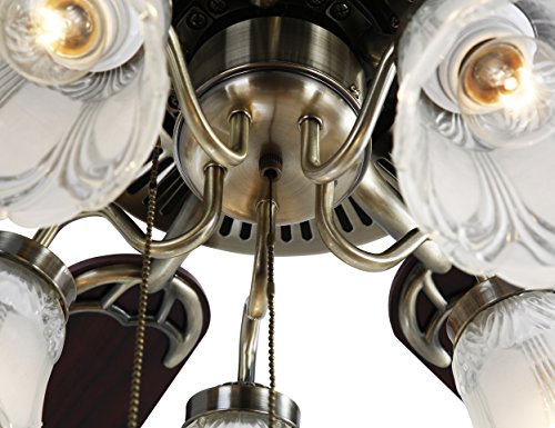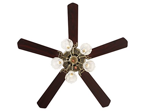 <2>This fan is the perfect centerpiece for bedrooms or living rooms up to 20 x 15 Feet, featuring 5 rosy red wooden blades that snap into a gorgeous new bronzed-finished motor unit for a stunning addition.