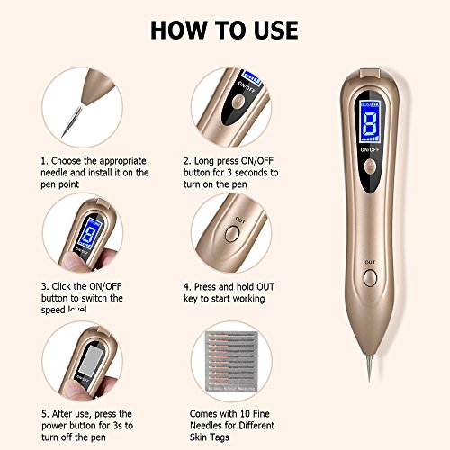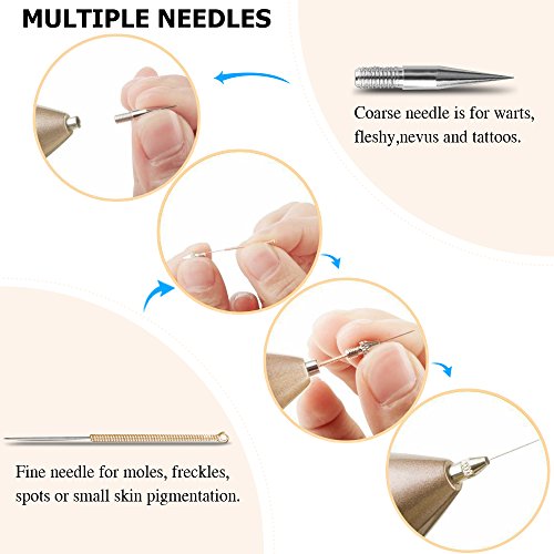 - SKIN TAGS HELPER: Professional mole remover device come with 2 kinds of needles - coarse needle and fine needle. Suitable for different skin tags like tattoos moles freckle fleshy nevus pigment, make your skin smooth and clean.