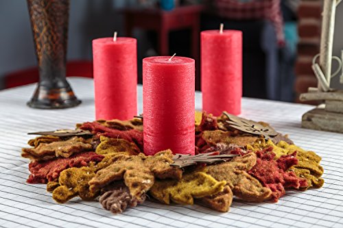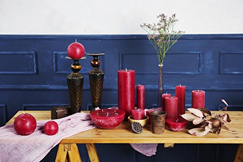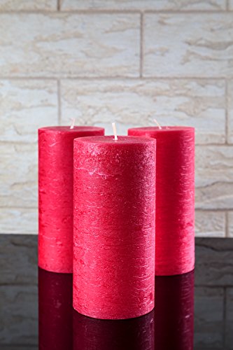 Studio : Melt Candle Company Publisher : Melt Candle Company Binding : Kitchen Product Description Set of 3 Red Pillar Candles! Lighten your home or special event with these attractive unscented pillar candles hand poured by Melt Candle Company. These pillar shape candles are crafted with high quality white wax and cotton wick. The combination of these two elements will ultimately result in a clean and smokeless burn. The wax used in this pillar candle is of the highest caliber and is made the Europe. It is guaranteed not to drip or melt away fast. The average burn time for this pillar candle is 70h which outperforms most other common candles. The extended burn time allows you to re-use this candle for multiple events thus adding value to your product. Our candles are not pressed and dipped into color but have colour all the way through. Place it on a table or in a lantern to create an attractive addition to any occasion including, wedding reception, garden, spa, bedroom, etc. Melt Candle Company brings the highest quality candles and candle holders to the floral and event industry. Each candle is crafted to perfection thus creating a sleek, flawless accent.