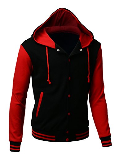 - Title : Men's Stylish High Quality Fabric Hoodie Baseball Jacket BLACKRED Size M