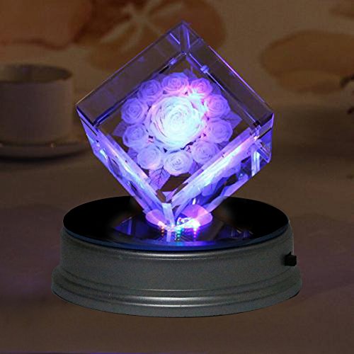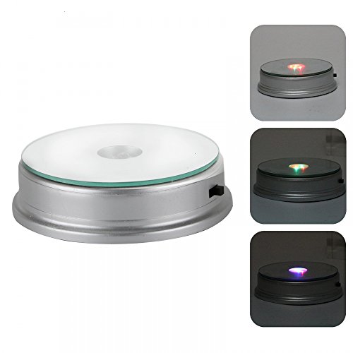 Mosuch Display Base, LED Lighted, Silver, Mirrored Top, Color Changing Lights, (Pack of 2)